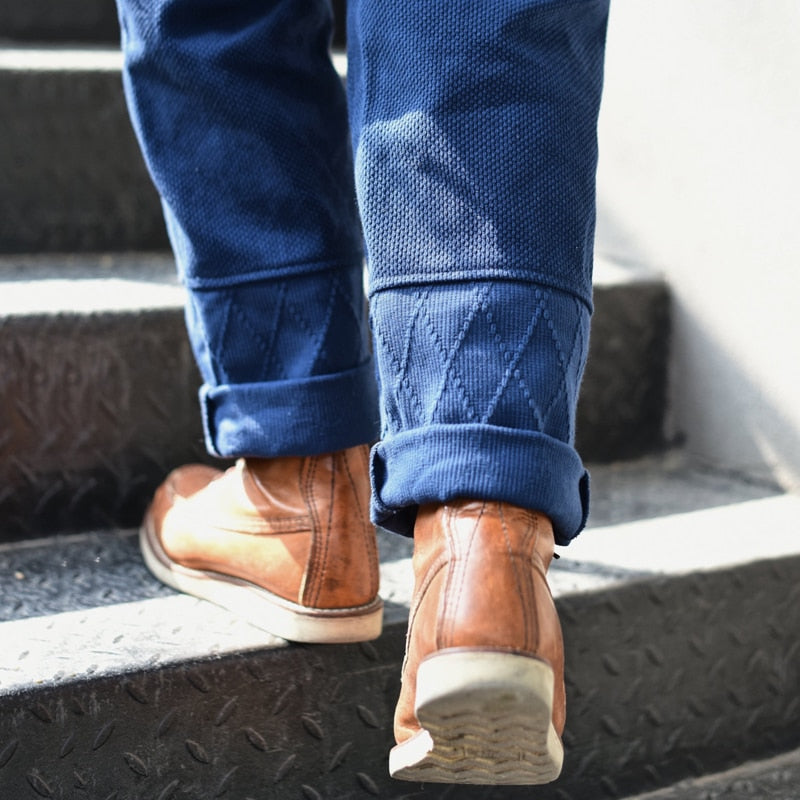 Saucezhan Sashiko Men Pants Multi pocket Cotton Trousers Baker Pants